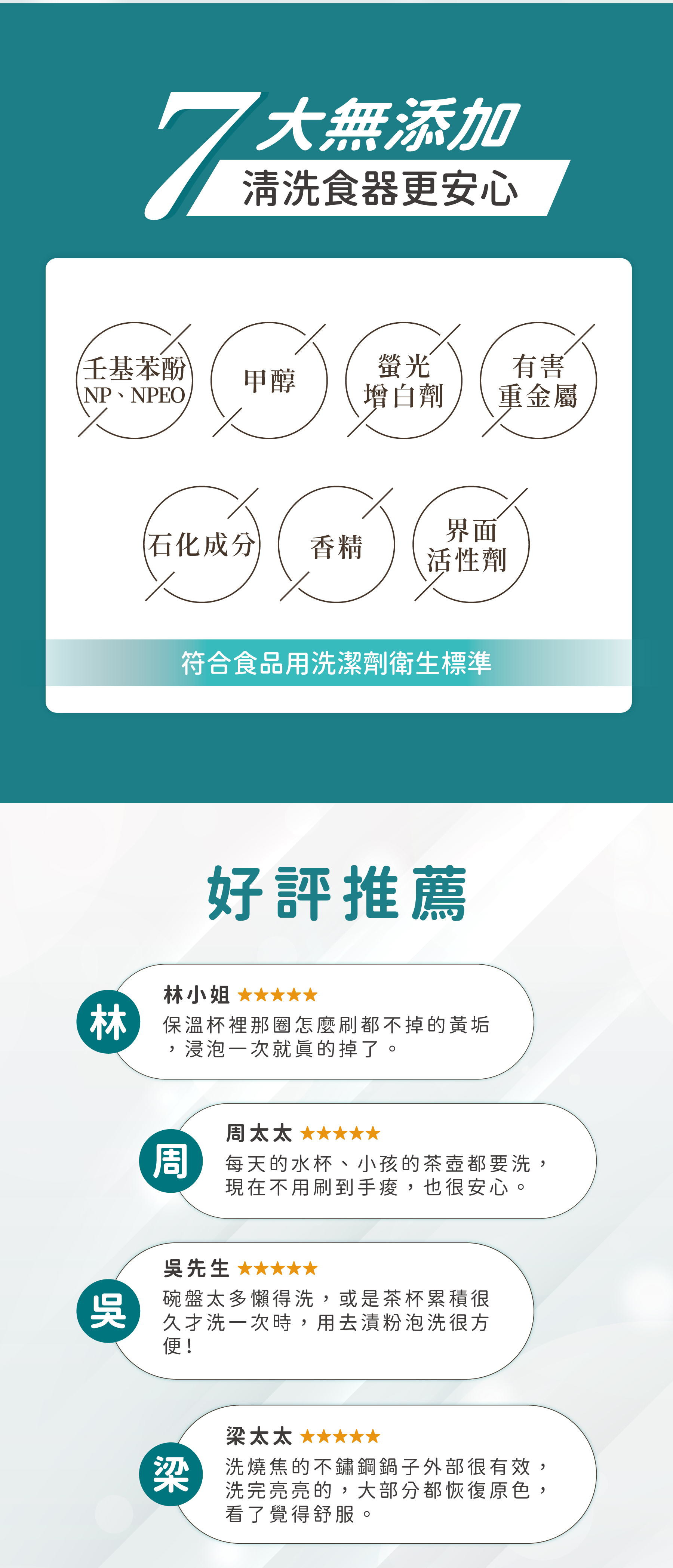 • 去除農藥:取用植物性食材萃取製成,能有效去除脂溶性農藥及表面髒污。