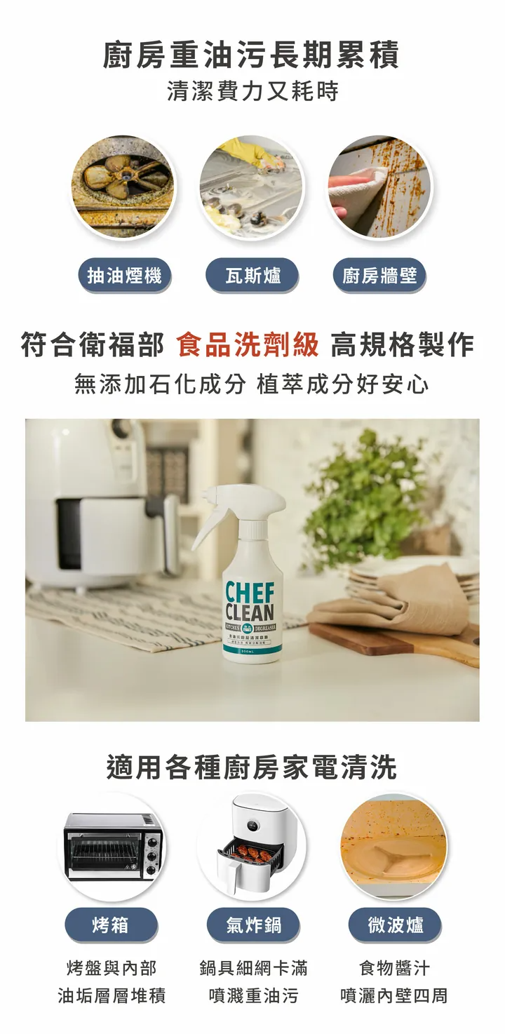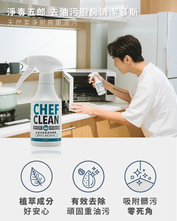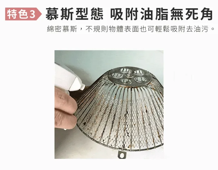 去油污廚房清潔慕斯: 植萃強力去油,一噴即分解,輕鬆不費力。