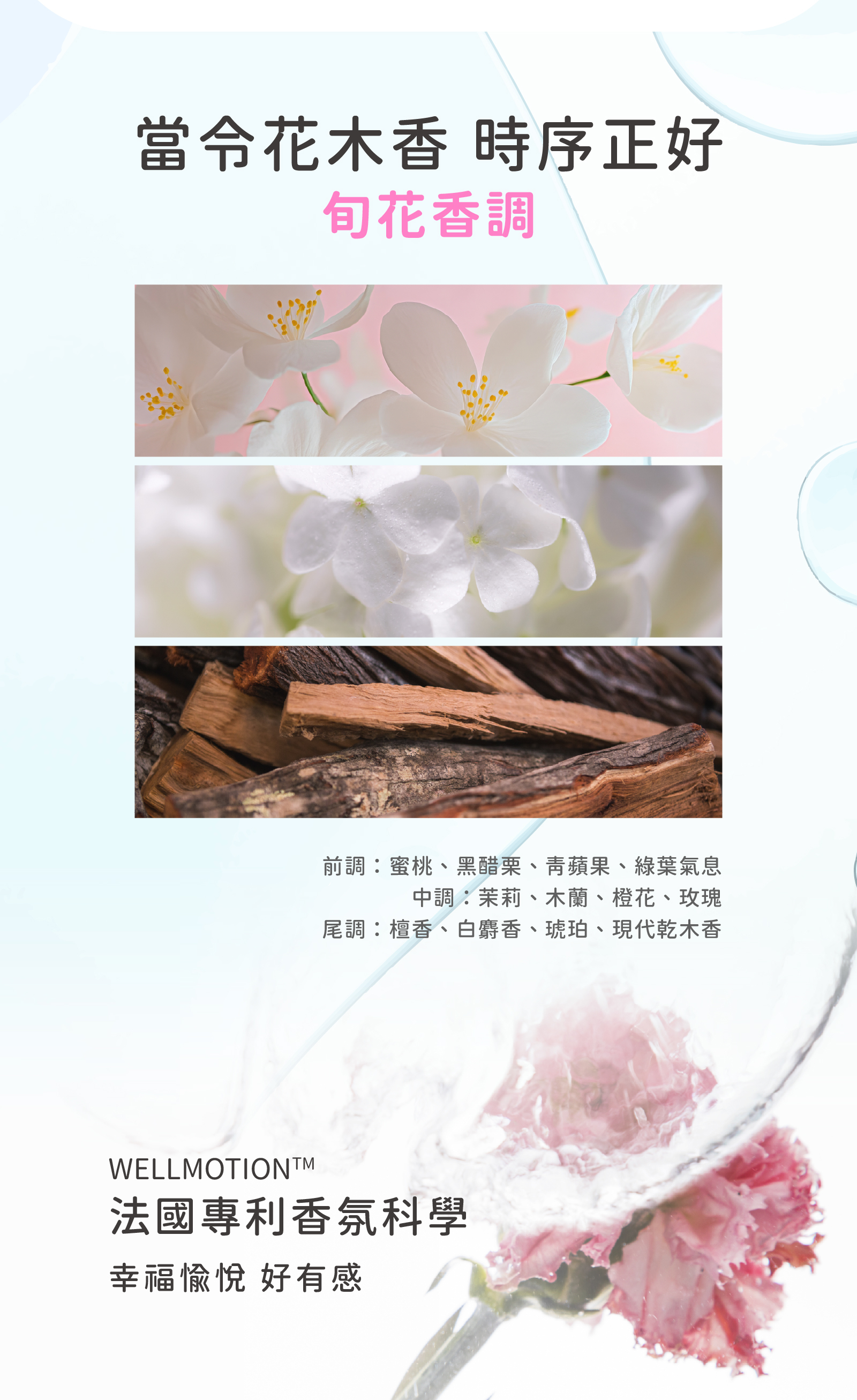 ● 旬花留香:淡雅旬花香氣,清新舒服、溫和不刺鼻。