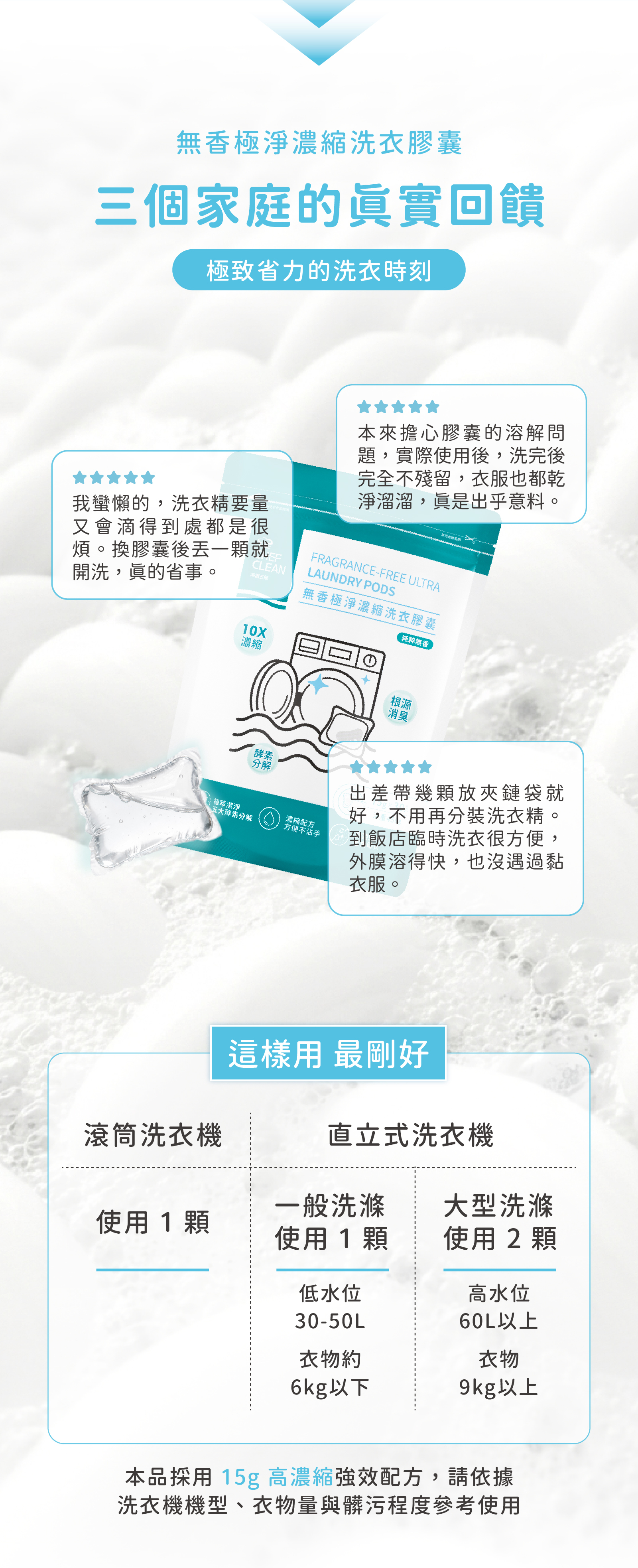 ● 高效洗淨:一顆免量取不沾手,省時俐落。